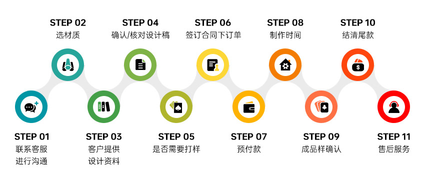 雙方簽訂供需合同,然后預付訂金;我公司在確認收到訂金后,由我公司設計師根據需方的要求進行設計制作,三天內設計樣稿免費回寄或網上傳回樣稿給需方進行修訂至較后確認。以較后確認的樣稿進行生產,生產完成后由需方進行驗收(可來人驗貨,或我公司發樣品到需方驗貨)。剩余貨款在驗收后發貨前付清。二、 簽訂合同及付款